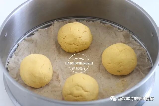 10、把所有的团子都包好,放进铺了湿棉布的箅子上,盖好锅盖,不开火,让它再饧上20分钟左右。