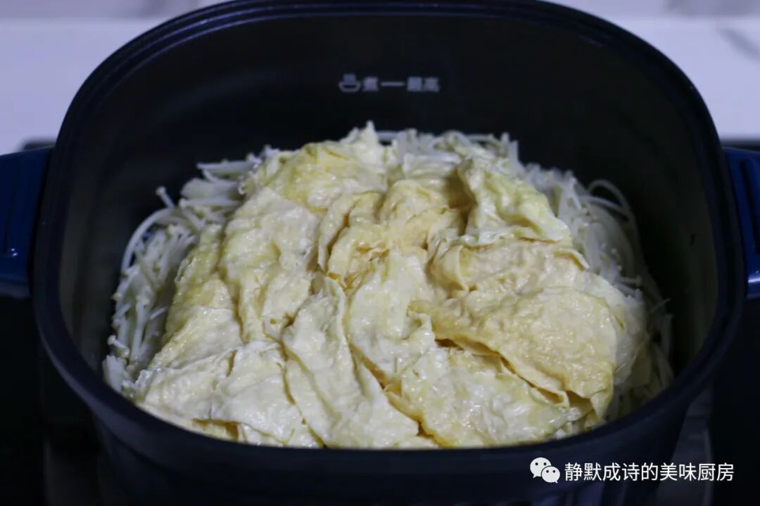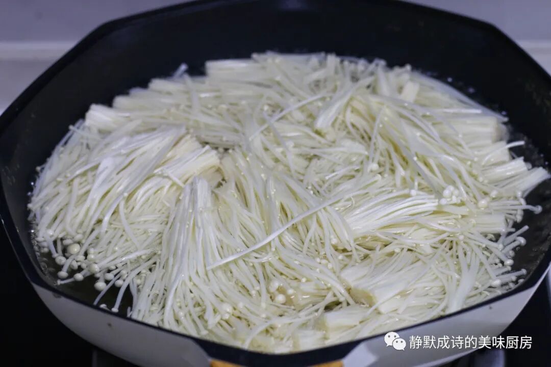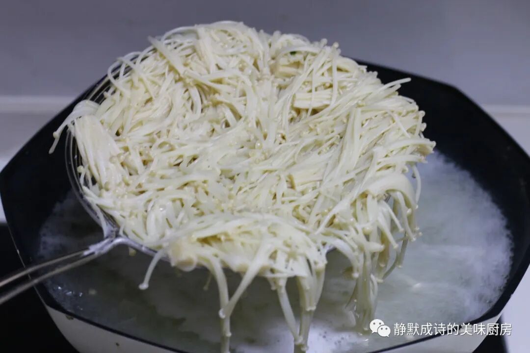 2、烧半锅清水,水开后下金针菇,焯烫两分钟左右。