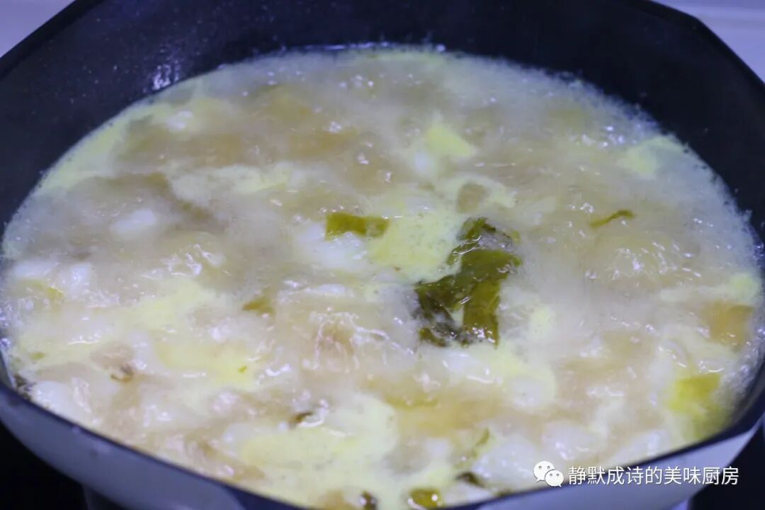 7、接着再加入适量热水,大火煮开后改为大火,再煮三五分钟,让汤入味儿。
