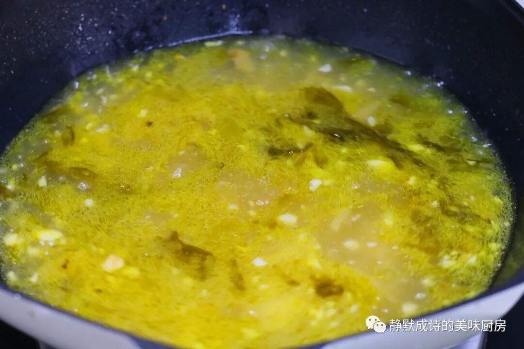 这菜可常吃,低脂、清淡、酸辣、可口,配菜跟鱼同样下饭,连汤都不要浪费,或拌饭或用来下面条,好吃得很。若是不能吃辣,就减少黄灯笼酱的用量。