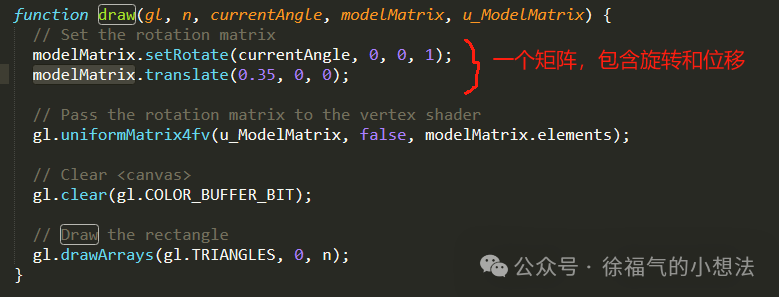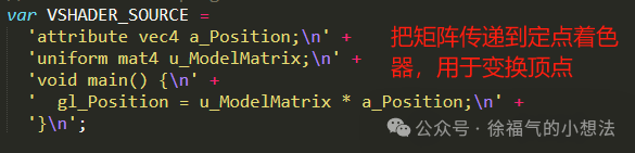 1>矩阵与向量(顶点)乘法,把顶点从局部坐标系变换到世界坐标系,即所谓的模型矩阵变换。