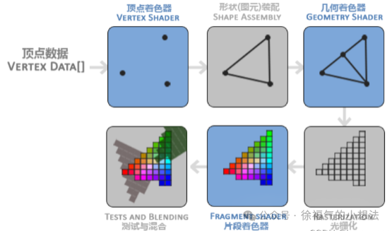 它由一系列的阶段组成,每个阶段都有特定的功能和任务。其中顶点着色器(几何着色器)和片元着色器(片段着色器)分别处理顶点和像素颜色。可以由程序员控制以实现定制的图形效果。