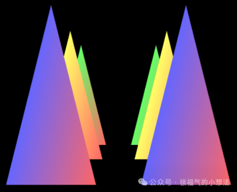 1>根据三角形与视点的距离,按比例对三角形进行了缩小变换