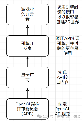 2>然后,再面向工具开发者(比如3D游戏引擎的开发商),由其调用API,实现引擎。