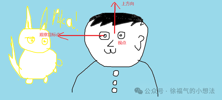 视点、观察目标点、上方向3个信息,如上图,清晰明了。