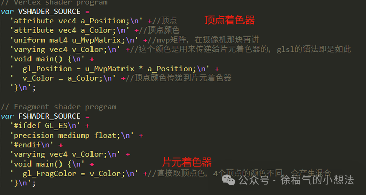 为了方便介绍下面的概念,会涉及到一些具体代码,引擎用CocosCreator;OpenGL的部分用其分支WebGL举例,源码来自《WebGL编程指南》,可自行搜索下载。