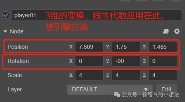 按照现实世界的直观感受,运动控制就是改变物体的x、y、z坐标而已,缩放指定比例即可,旋转用欧拉角。