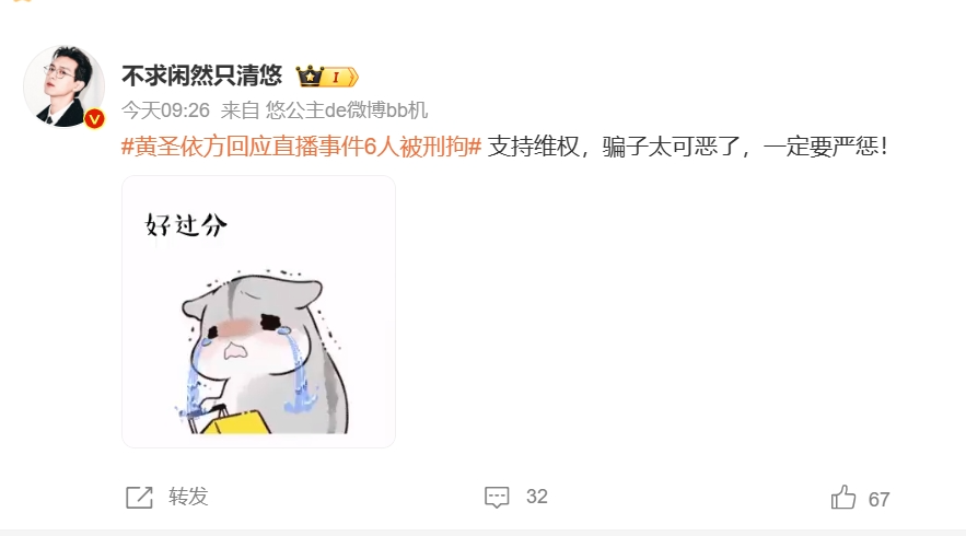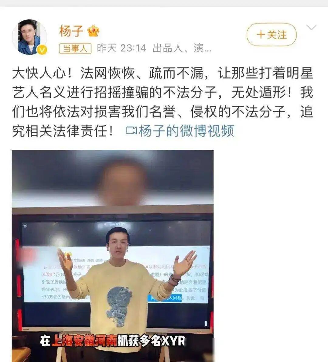 “大快人心!法网恢恢、疏而不漏,让那些打着明星艺人名义进行招摇撞骗的不法分子,无处遁形!