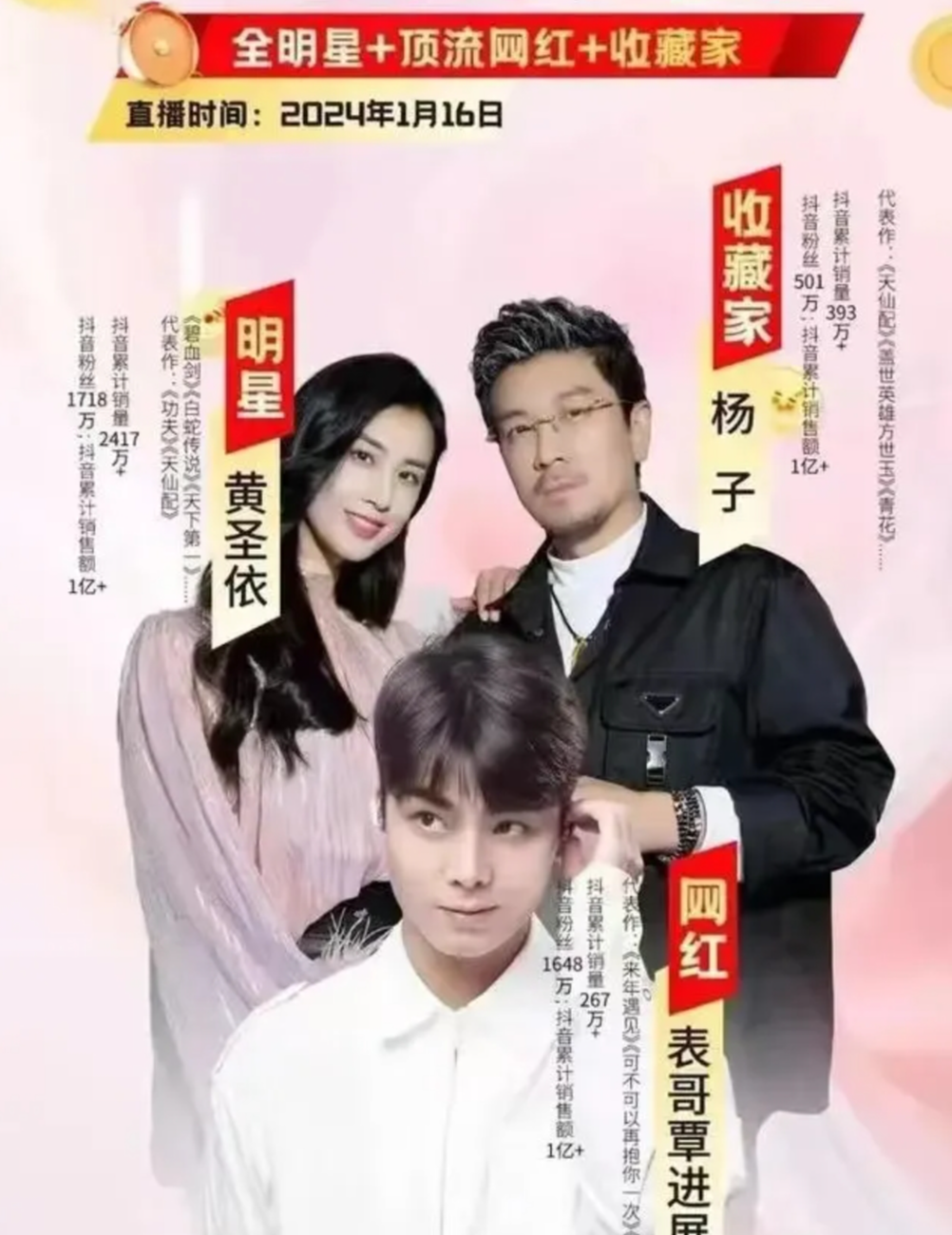 终于来到了令王女士分外期待的1月16日直播当日,万众瞩目的黄圣依和杨子出现在千万主播覃进展的直播间。