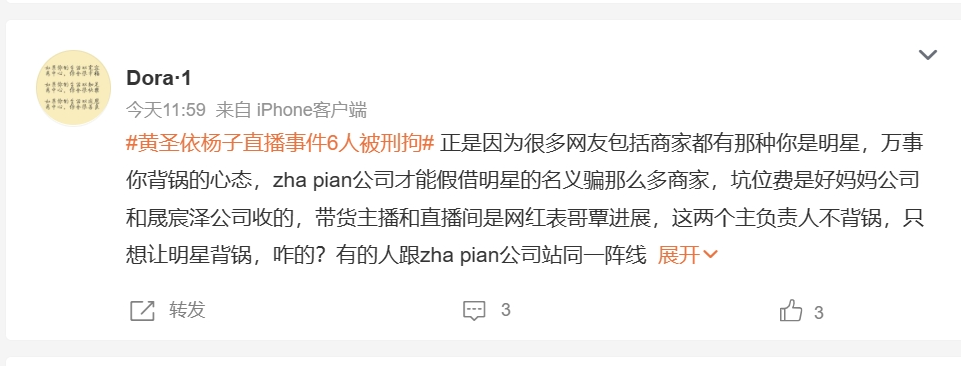 甚至有为明星蒙冤叫屈的,发自内心觉得这个明星做得挺冤的。
