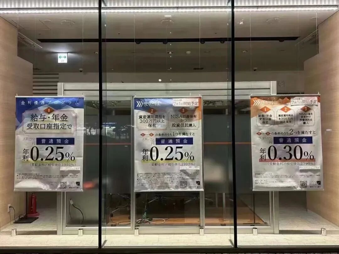 不信看看咱们的邻居日本,某银行门前的海报上面写着“2024年7月1日起,购买某理财产品,可享年利0.25%。”