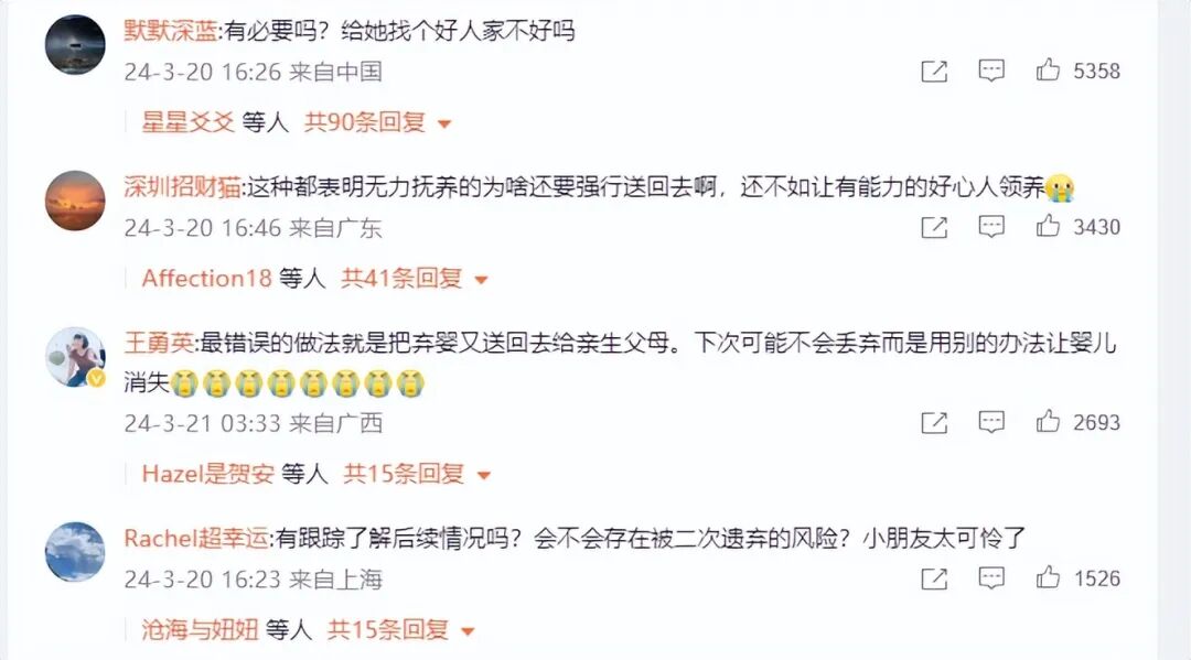 网友招财猫:“无力抚养为啥还要强行送回,不如让有能力的好心人来养。”