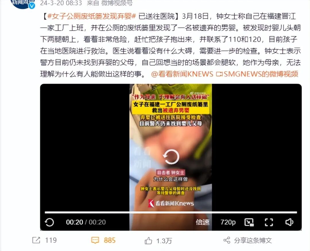 今年春天,两条关于被遗弃婴儿的视频上了热搜,网友戏称:“刚出生就历劫,这也是个大人物。”