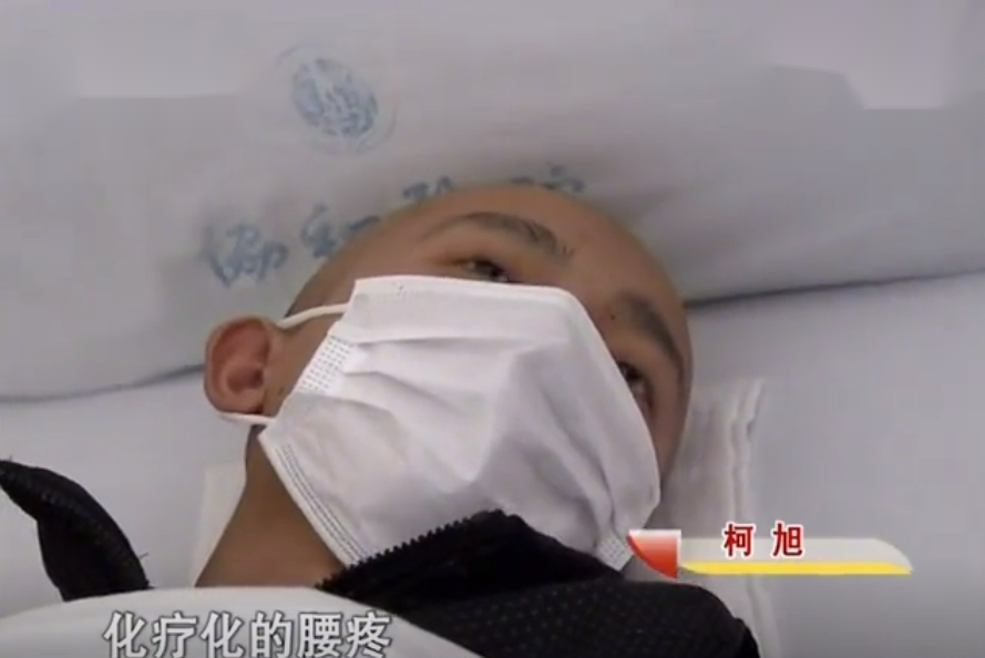 柯旭乌黑的头发一下子全掉光,后腰痛到不能翻身,全身肌肉酸软乏力。