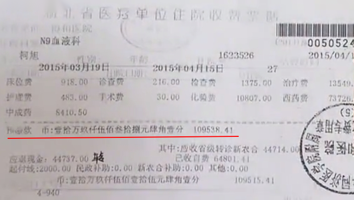 住院期间,他平均每天的医药费要4000多块,短短一个月就花了超过10万。