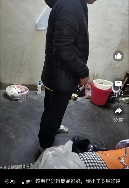 另一个买家秀中的环境是这样的,斑驳的水泥地面,年久失修的柜子掉了漆。