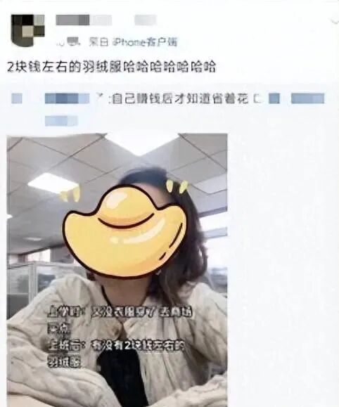 上学时又没有衣服穿了,去商场买;上班后,问有没有2块钱左右的羽绒服。