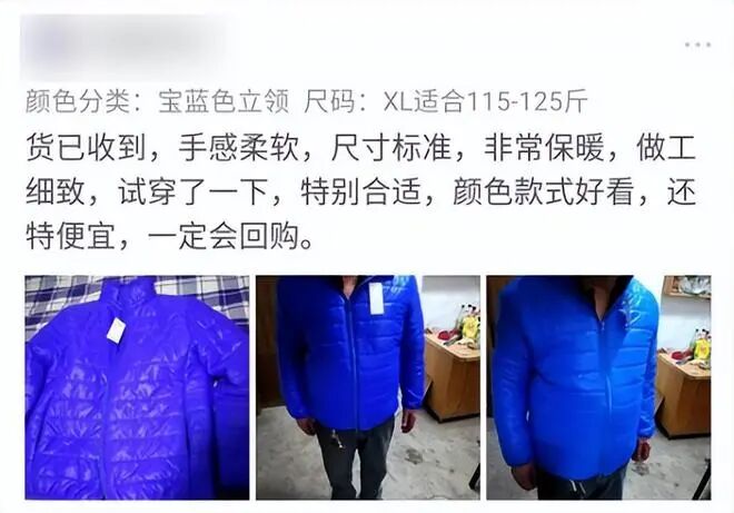 晒图买家秀的主角,都是上了年纪的人,有些人的年纪与我们的父母相仿,也有的像爷爷奶奶那样大岁数的老人。