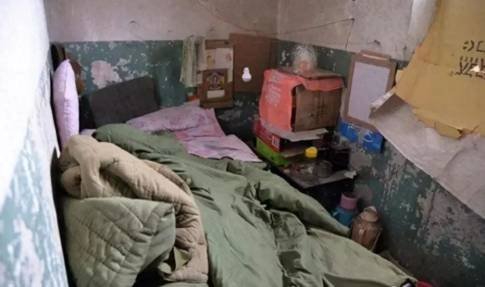 有人走进过杨丽的红房子,一间是她住的,角落里摆放着一张床垫,上面胡乱堆放着被子,早已看不出颜色。