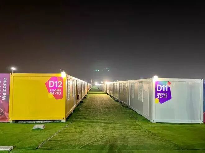 这个问题也被中国解决了,中国为卡塔尔修建了多个“球迷村”,这些球迷村都是简易的集装箱式房屋,数量超过1万套,每个房屋可以住两人,房间内家具设施一应俱全,除了有茶水间和洗手间外还有风扇,平时球迷们还可以聚集在空地上一起讨论比赛详情。