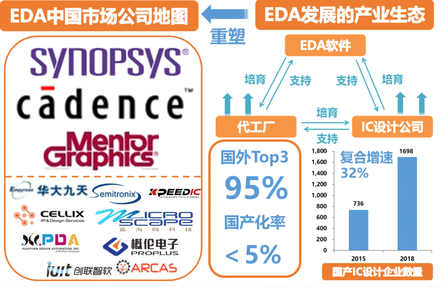 也就是说,华为旗下的海思在芯片设计方面处于不错的水平,但依然要借助到欧美的EDA软件。