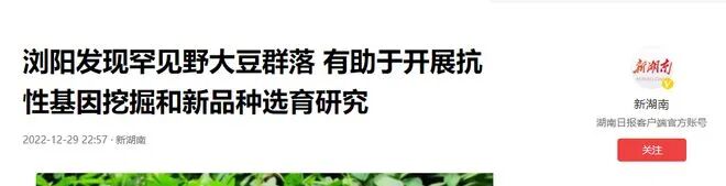 湖南省林业局发布消息,湖南省科研团队在浏阳发现的野大豆群落,对于湖南省开展相关基因研究和大豆育种颇具意义。