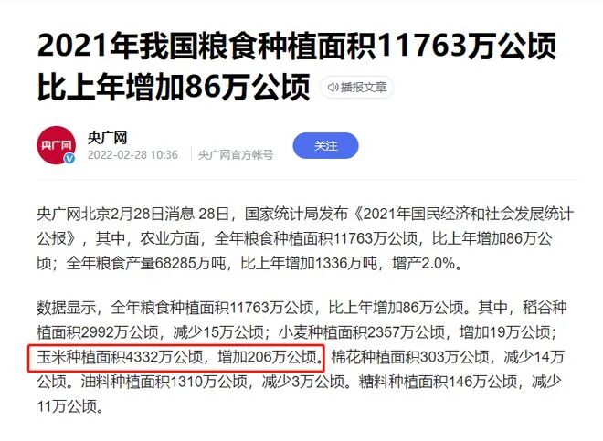 这就意味着,如果扩大了大豆的种植面积,那必然会减少玉米等农作物的收成,影响其他主粮的安全。