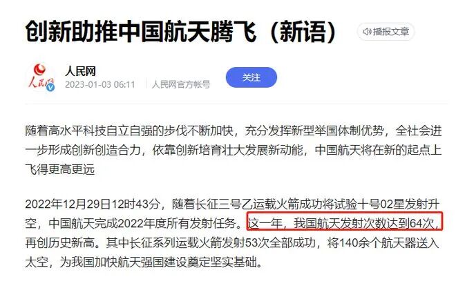 虽然2022年中国航天发射次数不如美国,但是2021年中国航天次数超过了美国,成为世界第一。