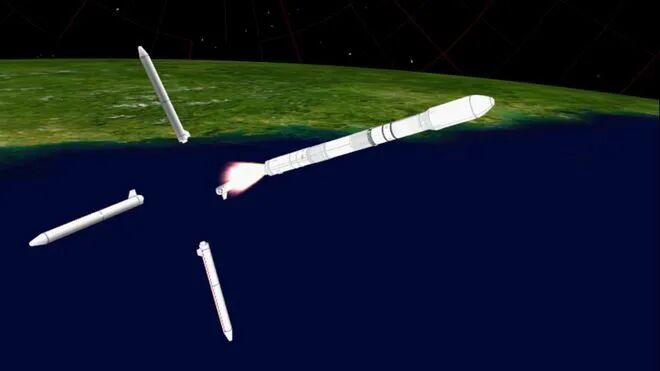 长征5B属于少见的一级半构型,这也是外媒一直在炒作长征5B威胁论的点,一级半的构型就是“芯一级+助推器”,火箭发射170秒后,4台助推器就完成工作了,然后下落,因为此时的速度并不快,所以助推器是沿着弹道导弹的路径降落,落区容易计算。