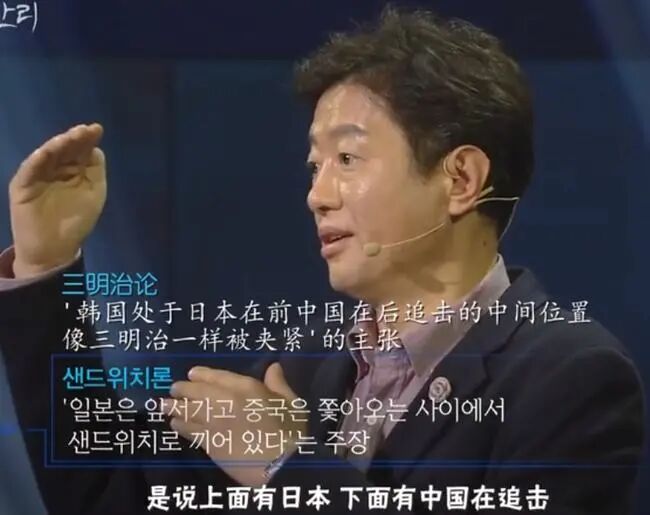 这其实是韩国商界对于韩国自身经济发展的担忧,把韩国经济比作了“三明治中的夹心肉”,夹在日本和中国之间。不过这种观念不仅被韩国人广为接受,还被扩展到了方方面面,比如:政治、外交、军事、文化等方面。