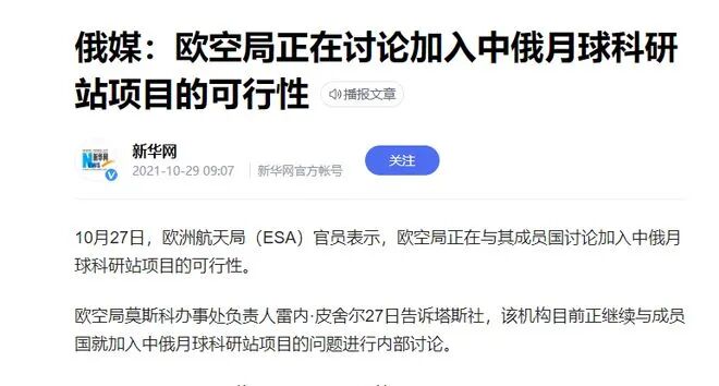 所以2021年的时候,欧空局已经在与其成员国讨论加入中俄月球科研站项目的可行性。