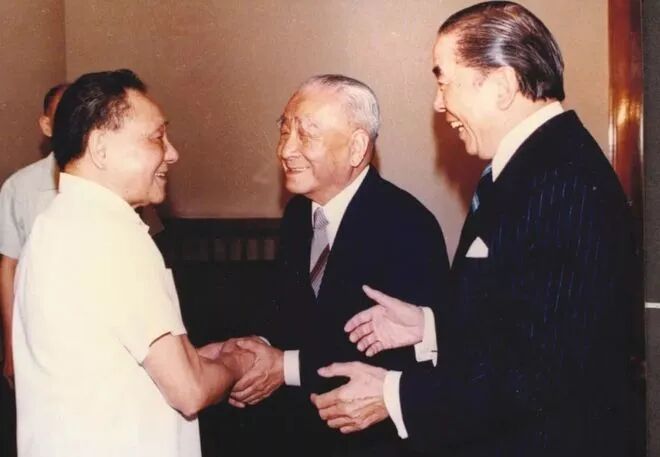 (1981年7月6日,邓小平在人民大会堂会见包兆龙(包玉刚之父)和包玉刚)