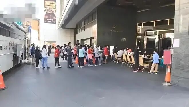 与此同时,台湾省宜兰一个献血点,民众为了献血排起了长队,甚至还有人为了献血而插队,引发其他献血人的不满。