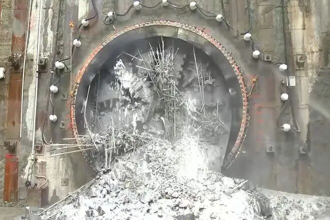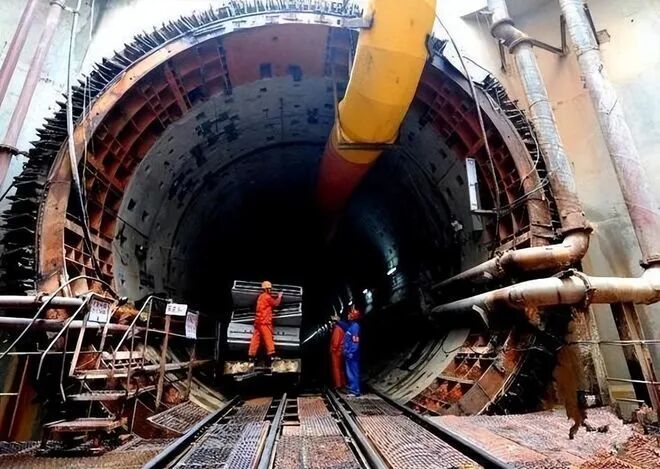 盾构机,就是专门开凿隧道或者开凿地下空间的机器,它的前方是刀盘,可以像蚯蚓一样啃食前方的岩石,再通过里面复杂的设备,将前方刀盘啃下的岩石和土壤排到外界,最后还能组装制作好的管片,支撑隧道,所以盾构机开过去之后,隧道基本上就成型了,工期大大加快,而且降低了人员伤亡的可能。