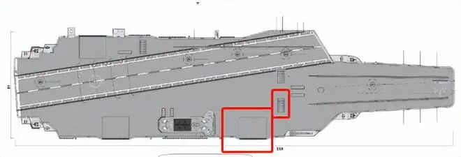 一号起飞位的挡焰板与舰岛前方的升降器距离太近了,两者会互相干扰。升降机工作的时候2号电磁弹射器无法工作;2号电磁弹射器工作的时候,升降机无法工作。