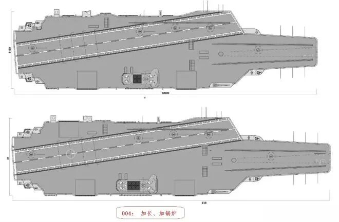从这张设计图上来看,19航母采用了三升三射,也就是3台升降机和3台电磁弹射器,而18福建舰只有2台升降机,3台电磁弹射器。