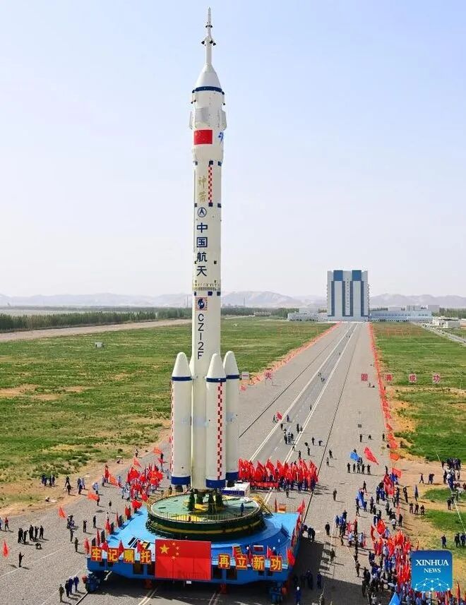 神舟十六号与长征2F船箭组合体已经垂直转运到发射区,整装待发!