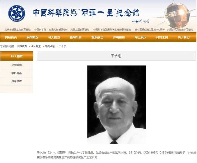 我国研制“两弹一星”时期,科学家于永忠就负责研制“奥克托今”的连续化生产工艺,虽然没有入选“两弹一星”功勋卓越的名单,但是在入选了“两弹一星”纪念馆的名人殿堂名单当中。