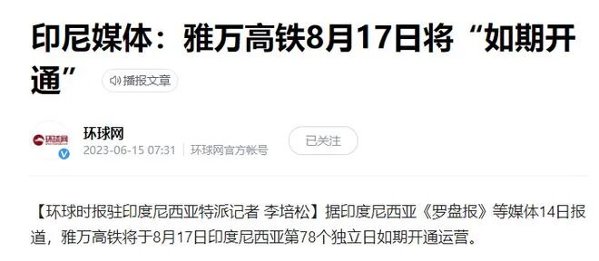 根据多家媒体报道,雅万高铁将于今年8月17日,也就是印度尼西亚第78个独立日,如期开通运营。