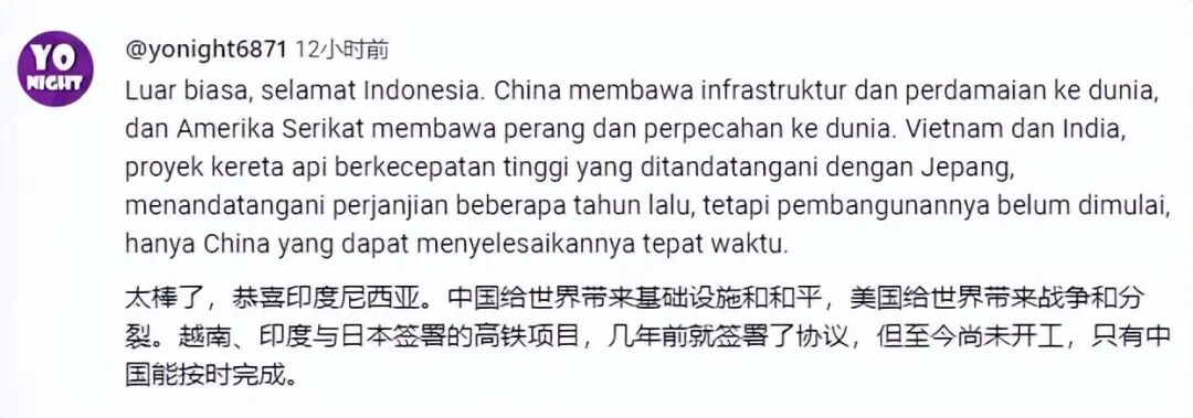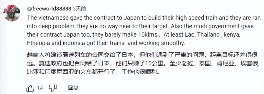 这是雅万高铁联调联试的视频下方一位海外网友的留言。