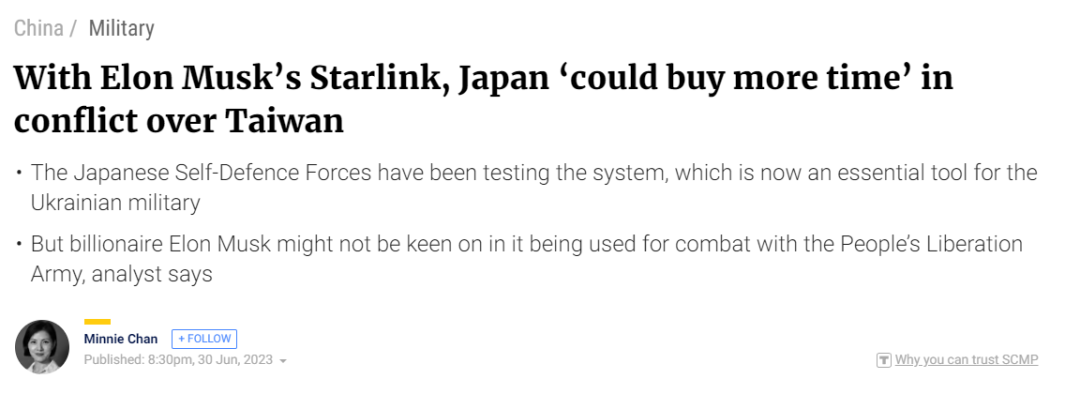 根据港媒《南华早报》报道,日本军方决定使用马斯克的“星链”卫星,来作为通信工具之一,
