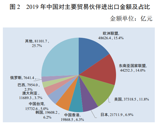 2019年,中国货物进出口总额31.54 万亿元人民币