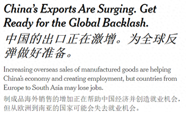 美国媒体《纽约时报》先崩溃了,在看到中国2024年的出口数据后,他们破防了,精分了,一边表示:美欧想阻止,但已无能为力;一边又开始宣扬“中国崩溃论”变成“中国威胁论”,说会让欧洲和南亚国家失去就业机会。
