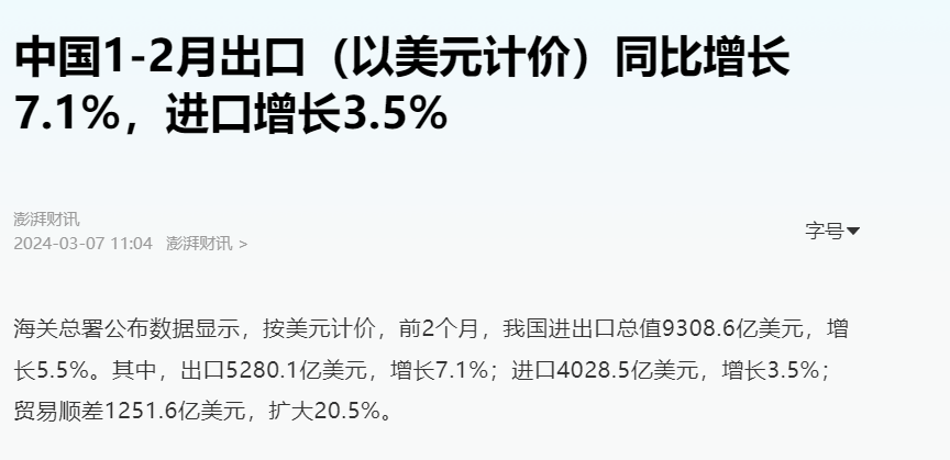 现在出口增长7.1%,中国的工业制成品在全球的占比只会更高,所以美媒绷不住了,虽然他们双标惯了,但这打脸速度实在有点快。