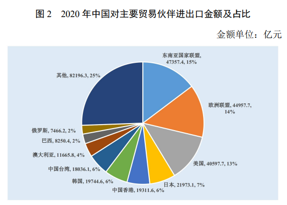 2020年,中国货物进出口总额32.2 万亿元人民币;