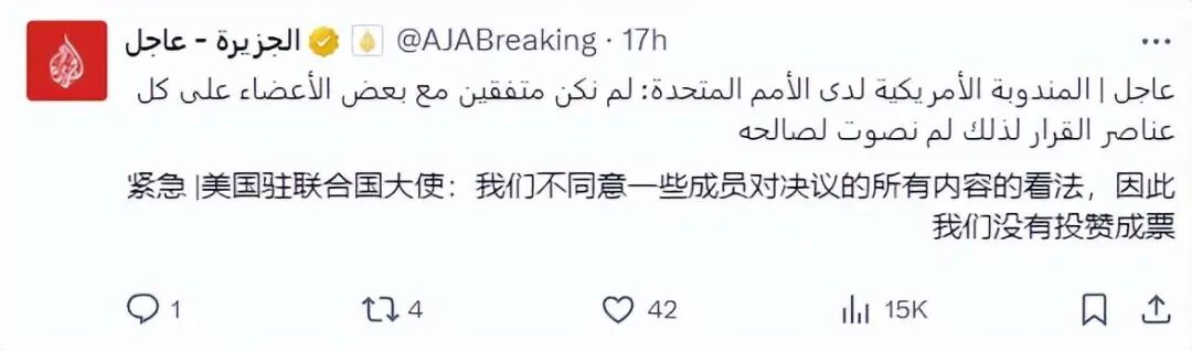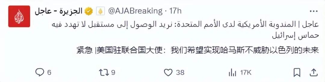 美国驻联合国大使馆也在第一时间精分了起来,他们紧急表态,票,我们是这么投了没错,但我们希望哈马斯不要威胁以色列的未来。