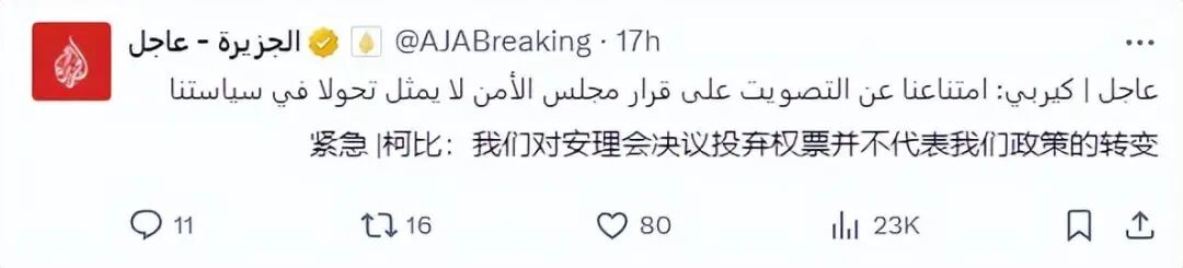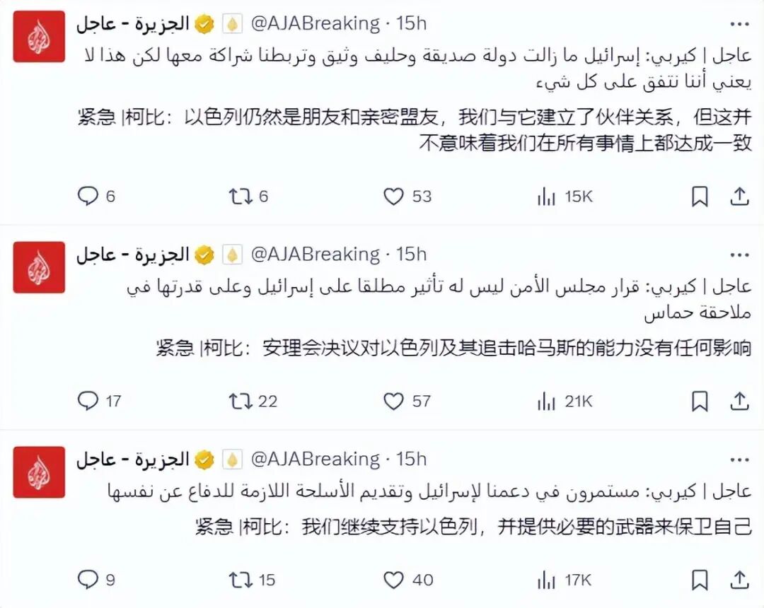 类似的提问,柯比也被问到了,他是这么说的,这是一项不具约束力的决议,因此对以色列和以色列继续追击哈马斯的能力没有任何影响。