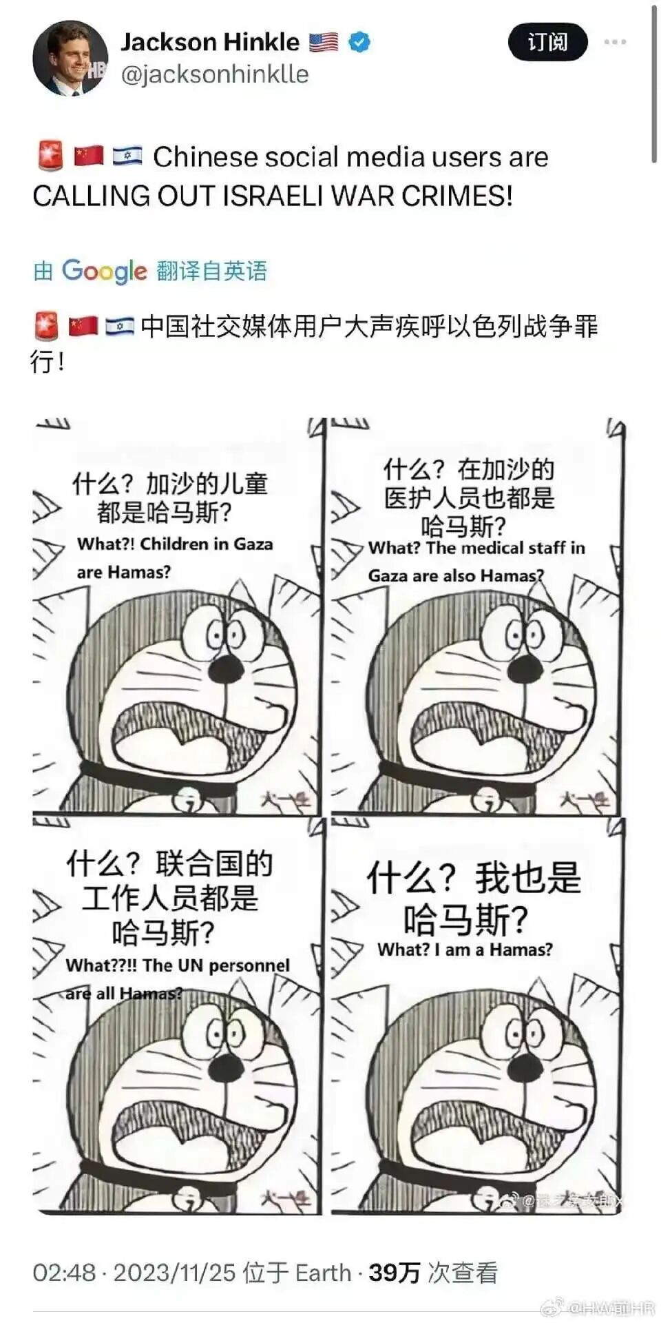 当然,按照以色列驻联合国代表埃尔丹一贯的风格,在决议通过的那一刻,全球有良知的人都是哈马斯。正如中国在外网的两个流行的段子一样。