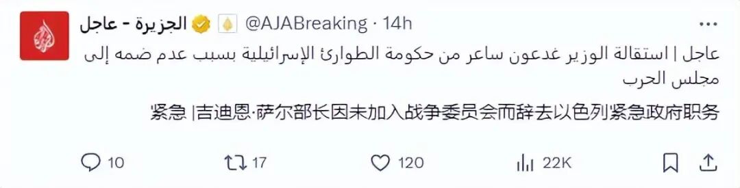 首先是以色列内阁成员吉迪恩·萨尔,他....跑路了。