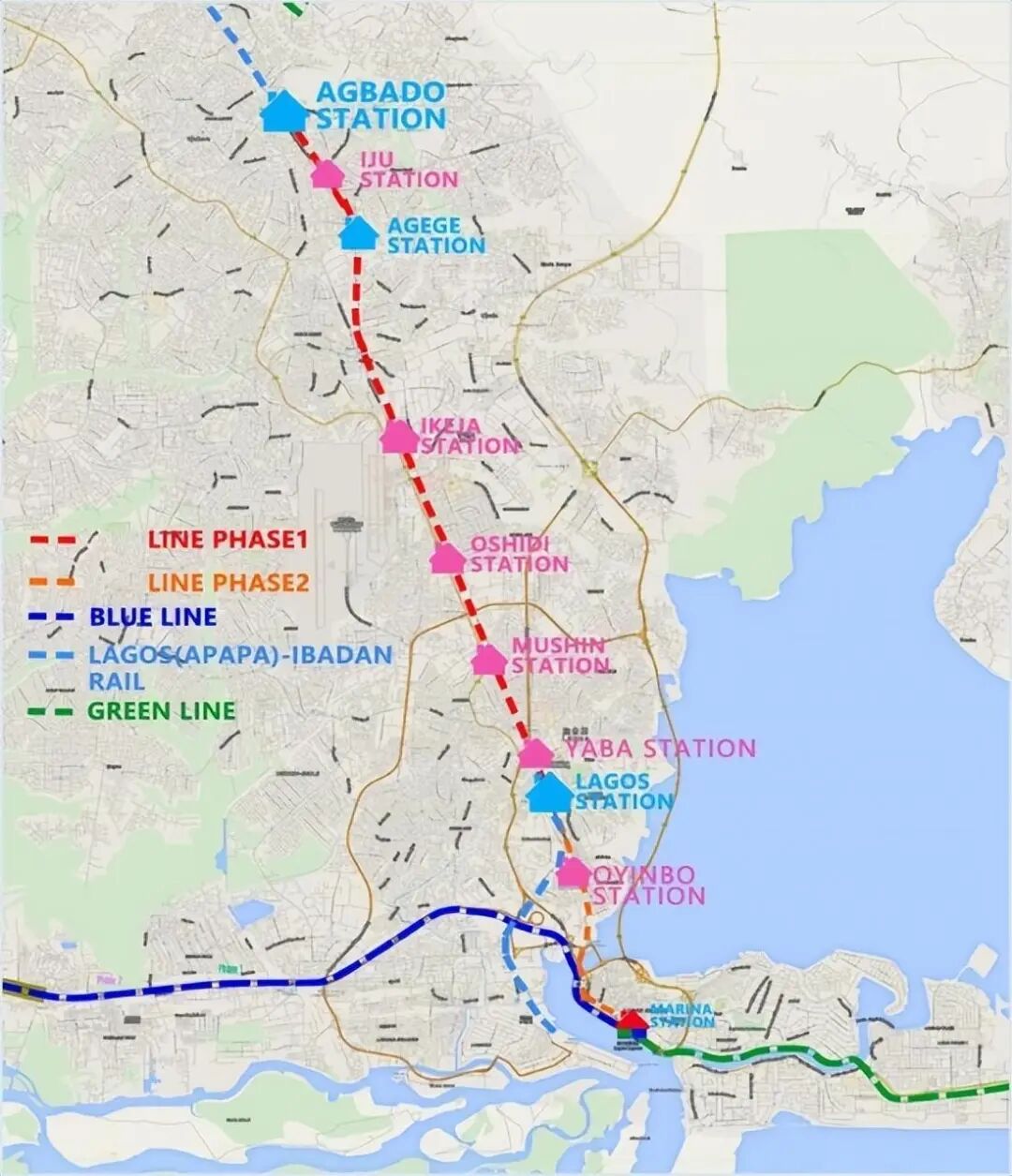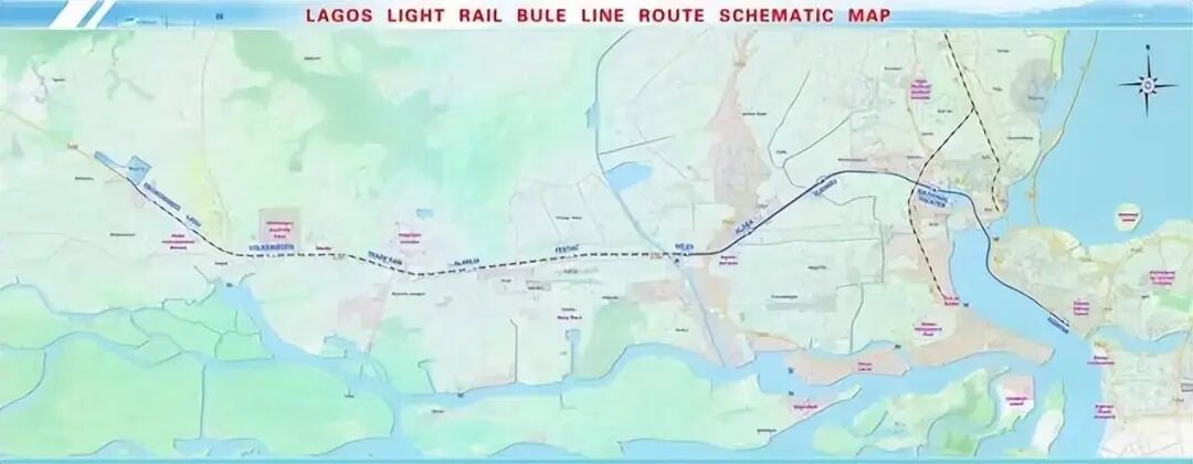 2009年,中国土木工程集团中标了蓝线,蓝线一期全长13公里,5座车站,设计时速80公里每小时,是第一条穿越拉各斯西部人口稠密地区的铁路基础设施。